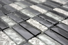 Mosaico rettangolare in vetro mosaico resina pietra artificiale grigio nero argento cucina alzatina bagno parete WC - MOS87-03108