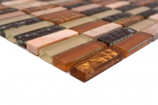 Mosaico rettangolare in mattoni beige, marrone, ocra, arancione, in vetro, in pietra naturale, per l'alzatina della cucina - MOS87-1206