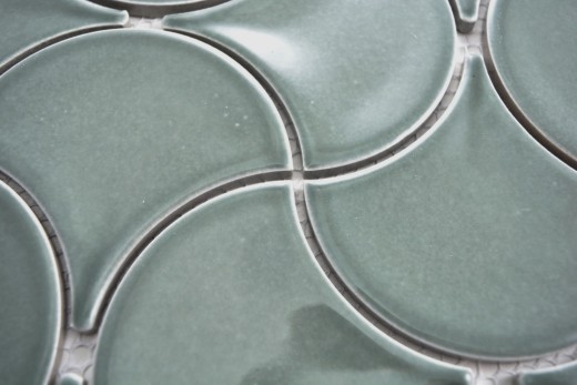 Piastrella a mosaico in ceramica a ventaglio petrolio onda lucida MOS13-FSW18
