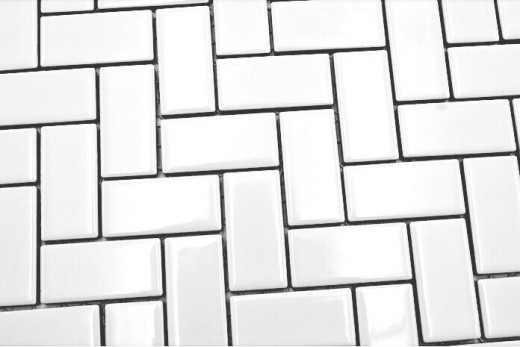 Piastrella a mosaico in ceramica a spina di pesce bianca lucida MOS24-CHB5W